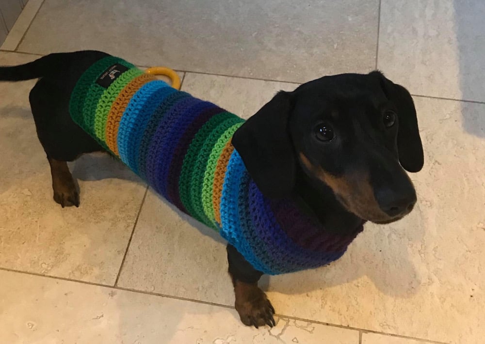 This snazzy is called Snazzy Peacock because the colours represent the magnificent tail of a peacock and I’m sure your dachshund will be as proud as a peacock when out strutting their stuff.